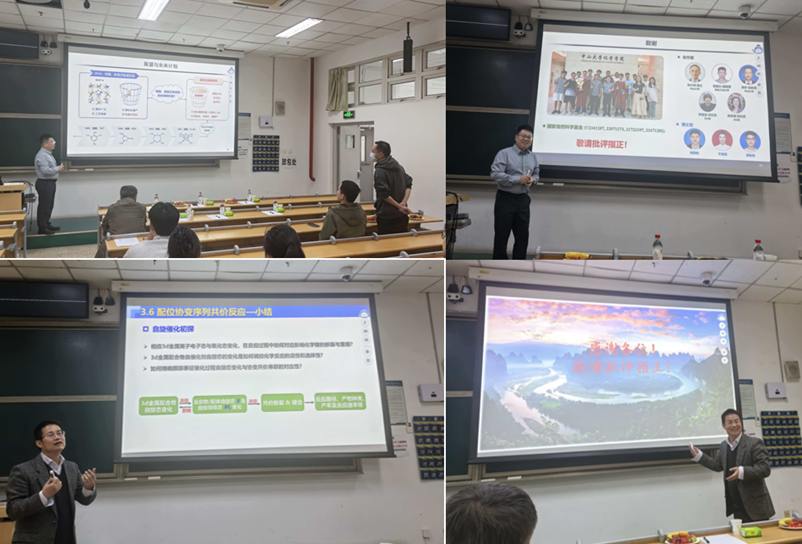 张伟雄教授现任中山大学教授、博士生导师,化学酒店偷拍 副院长,主持承担面上项目、优青项目、联合基金重点项目等多项国家自然科学基金项目,现兼任含能材料全国重点实验室学术委员、中国化学会第31届理事会青年委员、广东省化学会第9届委员会常任理事。他围绕多离子集成含能材料的设计理念、构筑方法、性能及应用等问题,系统介绍了其团队在离子型杂化材料与含能材料领域的代表性成果。张教授重点阐述了如何通过阴离子导向组装实现新型含能材料的创新设计,并展示了创制的无需硝化、易于放大生产、兼具军民应用潜力的多离子集成含能材料体系。报告还介绍了其团队构建的从基础研究到应用转化的全链条单质炸药创新体系的相关进展,其中典型化合物已实现吨级量产,其关键技术在关键领域已完成工程化应用。他的报告充分体现了基础研究与工程转化紧密衔接的鲜明特色,也为在场师生理解功能材料从实验室研究走向实际应用提供了重要启发。